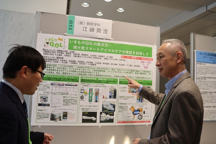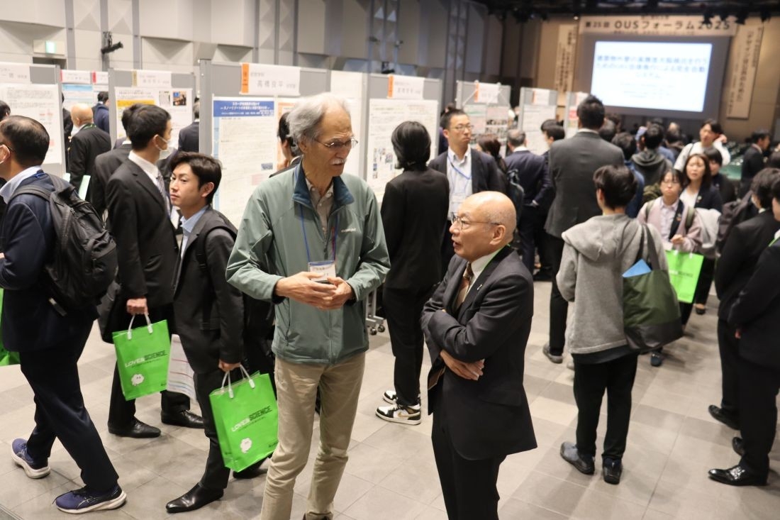 岡山理科大学の研究シーズをベースに産学官の連携を推進する「第25回OUSフォーラム2025」が11月21日、岡山駅前の岡山コンベンションセンターで開かれました。今年のテーマは「基礎から応用・未来技術への出会いと対話」。会社経営者ら約400人が訪れて講演のほか、ポスター発表で最新の研究成果を披露する教員らの話に熱心に聞き入っていました。