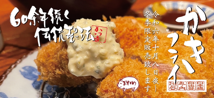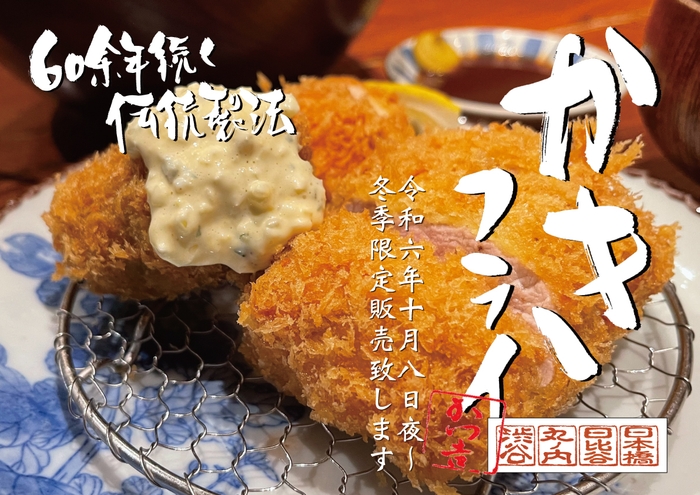 六十余年の伝統製法で揚げる「冬のかきフライ」10月8日(夜)より季節限定します!