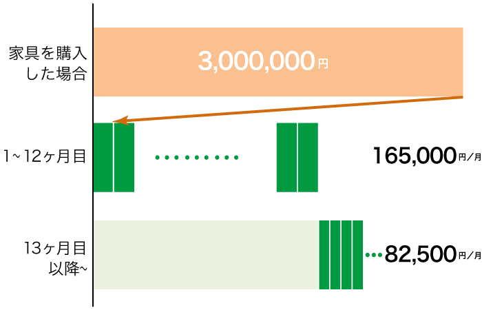 - 家具の調達コストを負担いたします。