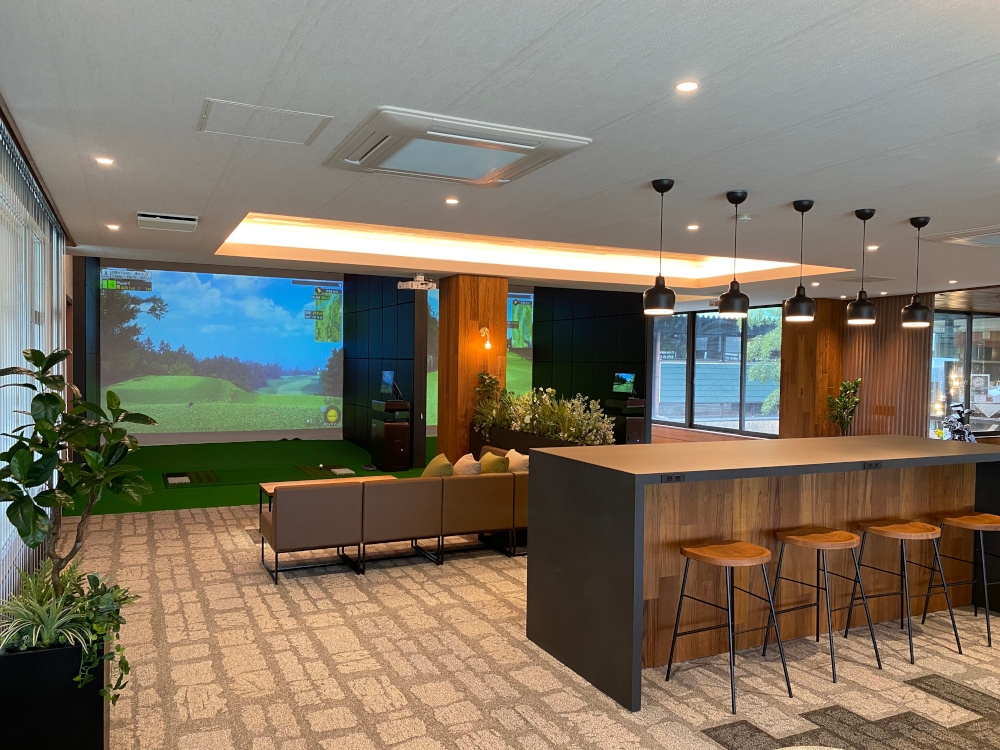 ラウンジにはシミュレーター・GOLFZON社の「VISION PLUS」を二台設置。世界の実在する有名コース210コース以上ものコースを体験出来ます。