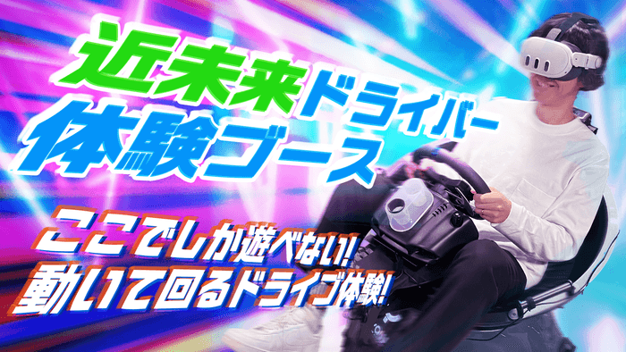VRゴーグルによる360°のバーチャル空間に加え、ハンドルコントローラーによる本格的な操作と、動きに連動する専用コックピット(筐体)を組み合わせることで、バーチャルとリアルが融合した「これまでにない新感覚の運転体験」を提供します。