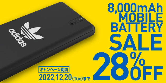 「adidas モバイルバッテリー」が28%オフの「モバイルバッテリーウインターセール」を2022年11月8日(火)より開催