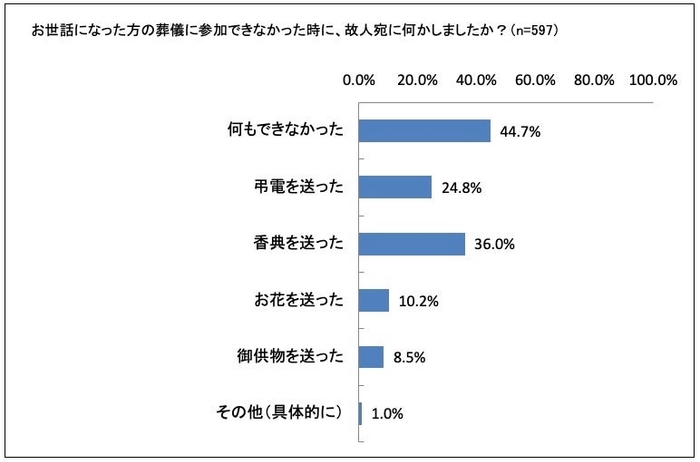 葬儀に参列できなかった人の半数近くが、何もできていない。
