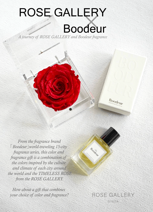 フレグランスブランド『Boodeur』ボドゥールの世界を旅する15都市の香りシリーズより、世界の都市が持つそれぞれの文化や風土からイメージされた色と香りを、ROSE GALLERYの『TIMELESS ROSE』(タイムレスローズ)にあわせて贈るセレクトギフトが誕生しました。