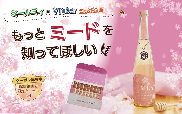 「京都蜂蜜酒醸造所」のグランドオープン1周年を2025年3月10日に控え、「もっと多くの人にミードを知って欲しい」との思いを込め、総勢30名のVTuberさんとコラボキャンペーンを開催。開催期間中は、個性あふれるVTuberさんたちの「The MEAD 大阪桜」の飲酒配信が配信されるほか、限定クーポンを配布しお得に「The MEAD 大阪桜」が購入できます。