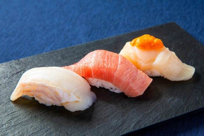 当フェアで提供する握り寿司は、寿司ネタの王道である本マグロをはじめ、ホタテ、イシガレイの3種です。本マグロならではの赤身のさっぱりとした旨味や、ホタテの濃厚な味わいと甘みを堪能できます。また、コリコリとした歯ごたえのイシガレイは、噛むほどにカレイ独特の淡白な甘みが楽しめます。