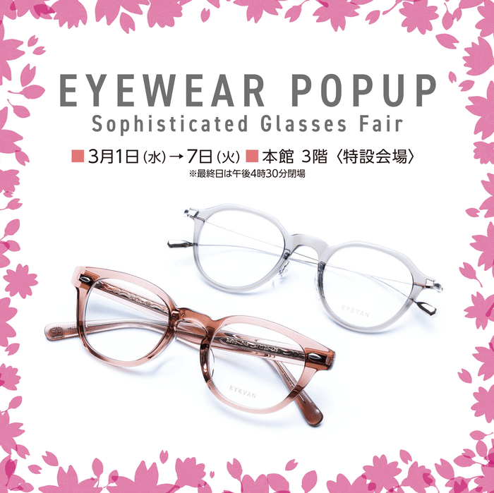 明治20年創業、今年で136年の歴史を持つ眼鏡店・株式会社金鳳堂(東京都港区、代表取締役社長:恒吉裕司)は、3月1日(水)→7日(火)遠鉄百貨店(静岡県浜松市)本館3階イベントスペースにて「EYEWEAR POPUP ~Sophisticated Glasses Fair」を開催します。