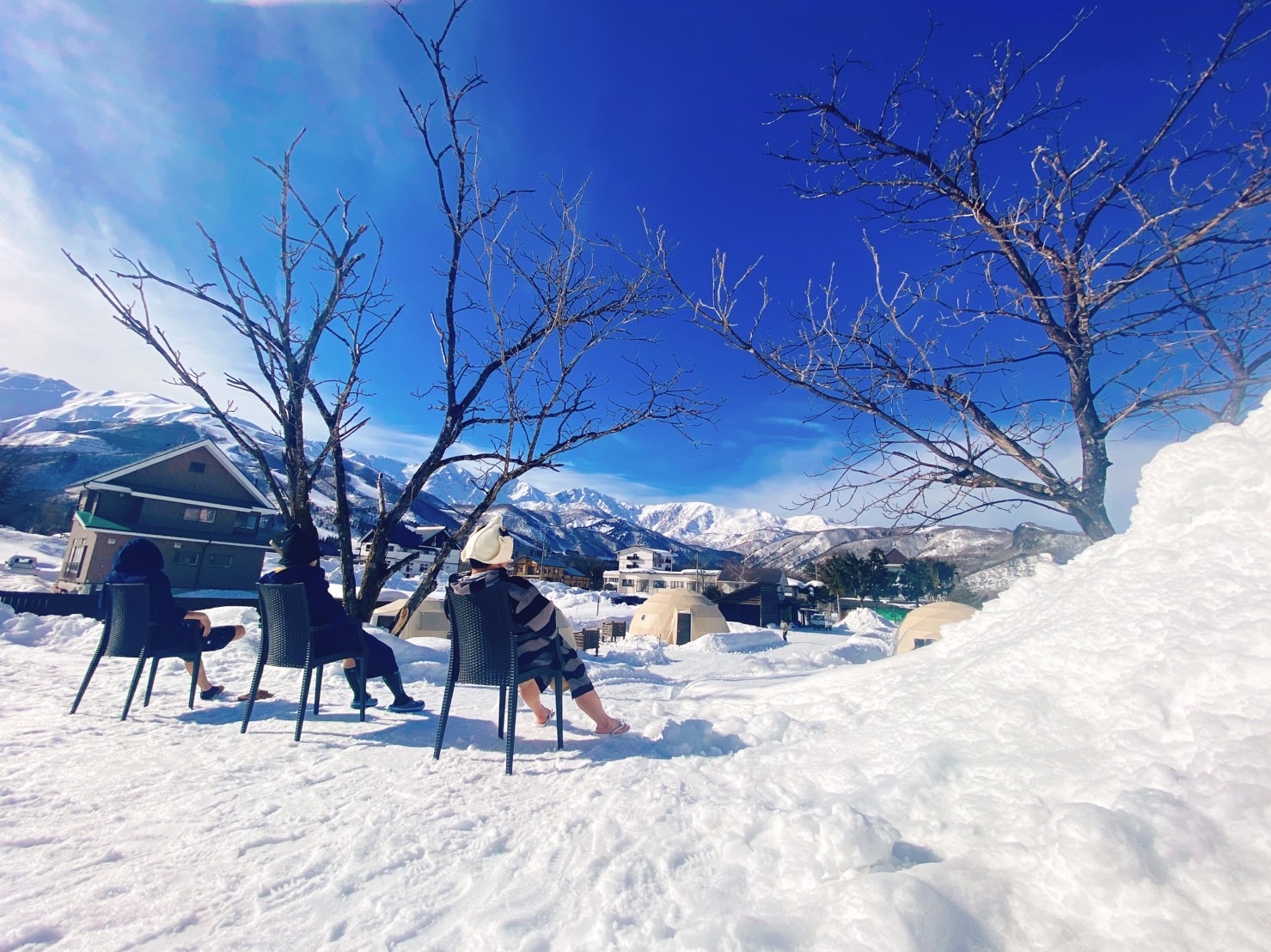 『サウナ好き心をくすぐるプライベートサウナ付きプランで、ロウリュや薪をくべるのも自分達でやらせてもらえるので思う存分楽しめました。ドーム型のテントからは白馬三山が見え、早朝に外に出ると一面雪野原、朝日が雪を照して、小鳥やキツツキの鳴き声がきこえ、とても心が満たされました。』