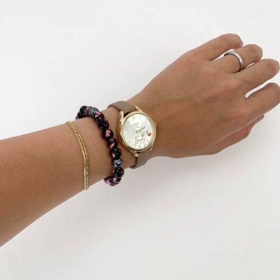 実際に腕に付けてみると肌馴染みもよく、お仕事だけでなくプライベートのコーディネートにも合わせやすそうです。ワンポイントのハートがシンプルながらにキュート!