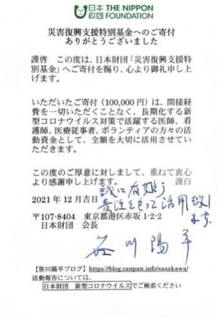 株式会社キネカ(本社:港区、代表取締役:渡辺 正樹、以下キネカ)は、猛威を振るう新型コロナウイルスと最前線で活躍される医師や看護師などの医療従事者の方々への支援を形にしたいと思い、pato応援プロジェクトとして、2021年3月19日〜2021年4月16日までサービス内で日本を元気に応援クーポンを配布いたしました。 アプリ内でクーポンを通じてゲスト様が利用した費用(原価、消費税など)を除く収益の一部を「日本財団 THE NIPPON FOUNDATION」に寄付いたしました。