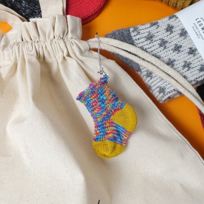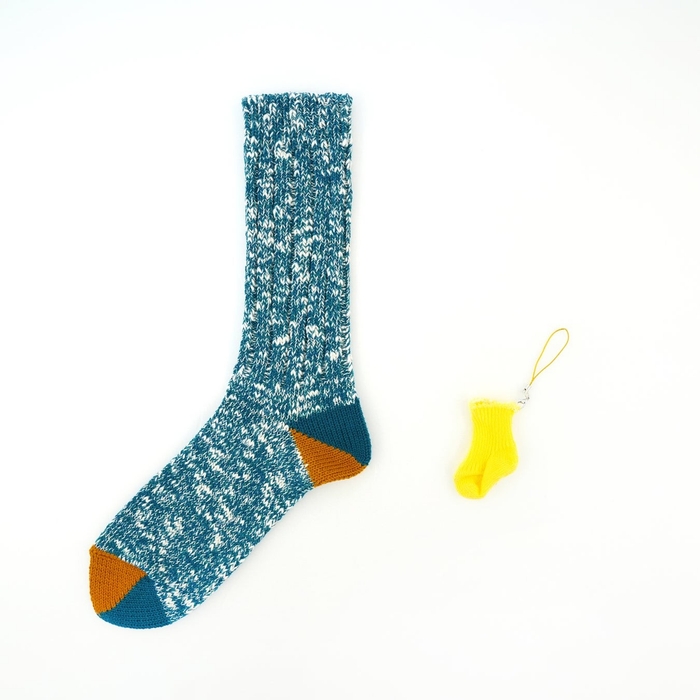 さらに、通常は廃棄される残糸を活用し、サステナブルなものづくりにも取り組みました。従来の靴下の概念に囚われず、バッグやスマホに付けるアクセサリーとしてお楽しみいただける、新しくてとっても小さな靴下です。