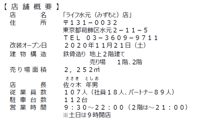 売り場を刷新し、より便利なお店へ! ライフ水元店 改装オープンのお知らせ
