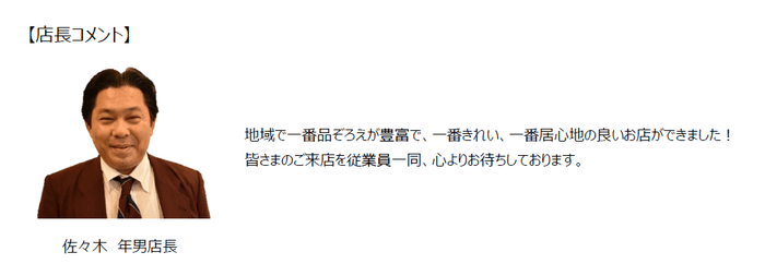 装いを新たに、明るく・楽しい・きれいな売り場づくりでお客様から最も信頼される地域一番店を目指します。