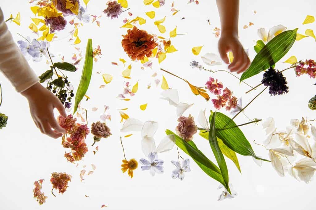 探究のパートナーである芸術の専門家「アトリエリスタ」が、本イベントに合わせ、花に出会い、感じるから始まる探究プロジェクト「花に聴く」を開催します。花びらをよく見てみると血管のように見えたり、花の内側と外側で色が違っていたり。マイクロスコープを使用し、細部までじっくり見ることや、すりつぶし色を研究することなど、花と会話をするように活動を進めていきます。楽しみながらも自分自身と向き合い、オリジナルのアイデアを表現し、感性を育んでいくことを目指します。そして、プロジェクトに使用する花は、ハイアットリージェンシー大阪内で飾られている花や地域の花屋からもらったロスフラワーです。痛みが早いものは、押し花やドライフラワーにすることで、生花とは違った美しさを楽しむことができます。