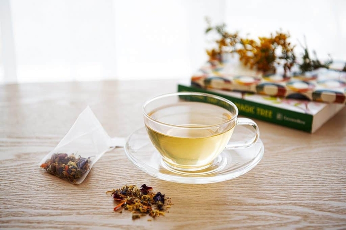 子どもだけでなく大人も楽しめるように、本イベントの開催期間中限定で、お部屋にハーブティーを用意します。通常ハーブティーは花や葉をブレンドして作られますが、今回は花と実だけを使用しており、すっきりと飲みやすいことが特徴です。選んだ花は、アトリエから見える景色に合わせ、海と空をイメージした青のコーンフラワーや、太陽をイメージした黄やオレンジのカレンデュラやカモミール。「みる」「香る」「味わう」3つの視点から花に触れ、時間の経過と共に変化する花を楽しむことができます。