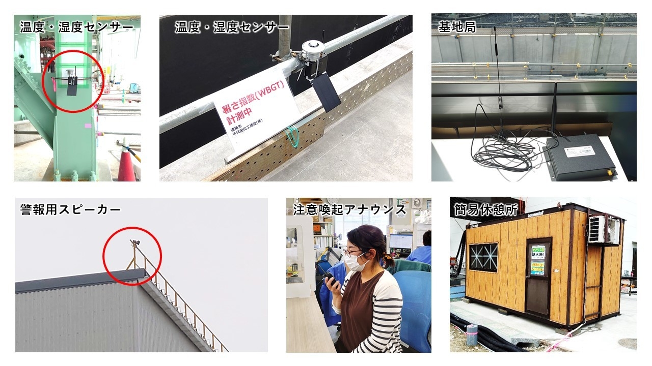 現在、現場では、ZETA温度・湿度センサーを屋外へ7台、屋内へ3台設置し、2021年5月中旬より導入し運用しています。納入してから数日で設置完了し、運用を開始しました。熱中症アラートのメール受信者は現場管理者約5名とし、熱中症アラートが発砲された際は、現場事務所から屋外スピーカーを通し、WBGT値に応じて現場作業員へ作業中止や休憩・水分補給・簡易休憩所への避難を促す注意喚起のアナウンスを実施しています。これによって、作業現場全体での徹底した休憩を確保することが可能になり、また、管理者にとっても計測エリアごとに休息指示を実施する明確な指標ができたことにより、より的確で安全な現場管理が可能となりました。