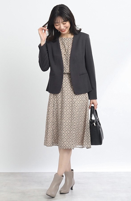 1.ストレッチ性と弾力性のあるジャージ素材で仕立て映えするテキスタイル。