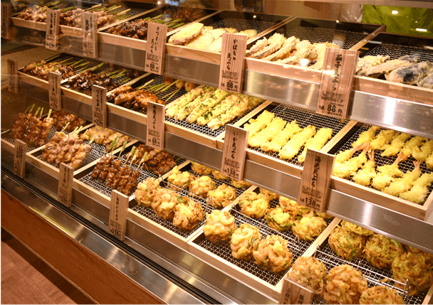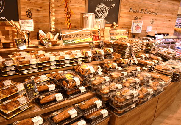 「大泉学園」駅から連絡通路で直結している2階部分に惣菜売り場を移設し、売り場面積は1.8倍に!食品添加物に配慮した「ビオラルのお弁当」のほか、新たに「店内手作りのさつま揚げ」、新設した対面コーナーでは店内で作った「焼き鳥・天ぷら」を販売いたします。
