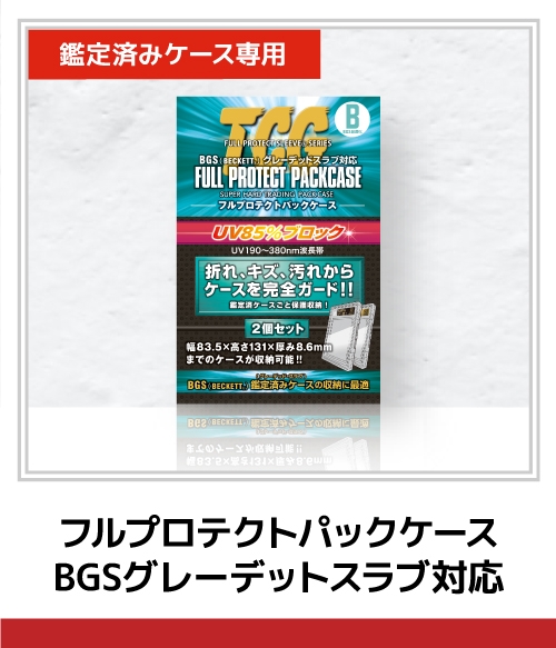 フルプロテクトパックケースのSサイズ、Lサイズ、PSAサイズ、BGSサイズと4サイズ全て対応しています。
