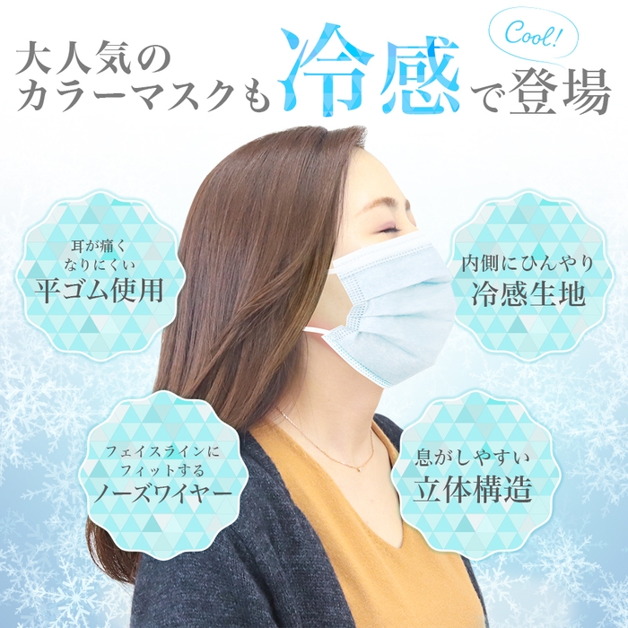 今回その中でも「夏のマスク事情」にフォーカスして完成したのが接触冷感カラー不織布マスクです。