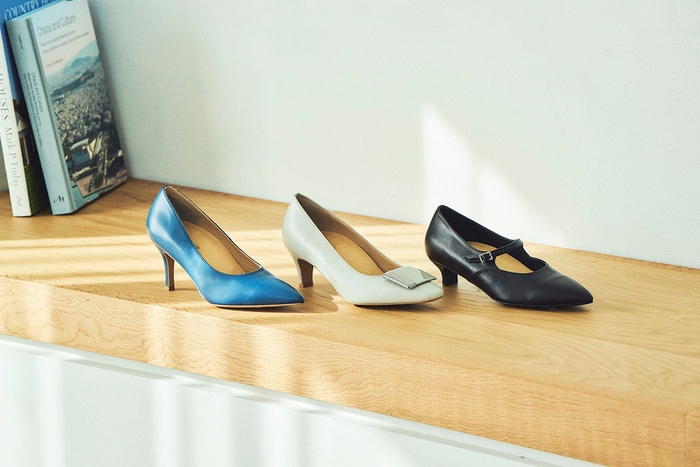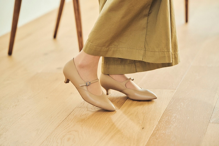 フォーマル・カジュアルどちらのシーンでも気持ちを高めてくれるローヒールパンプス。リラックスして履ける3.5cmヒールにはエレガントに見せる細いヒールを採用。アクティブな現代女性のライフスタイルをサポートします。