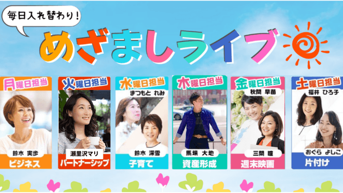 「めざチア」は、鈴木実歩(未来シフト株式会社)が主宰する、日本最大級の朝活オンラインサロン。現在、約9000人が在籍中!毎朝8時から日替わりで、「ビジネス」「恋愛」「子育て」「お金」「エンタメ」「家事」など、さまざまな分野のライブ配信をお届けしています。