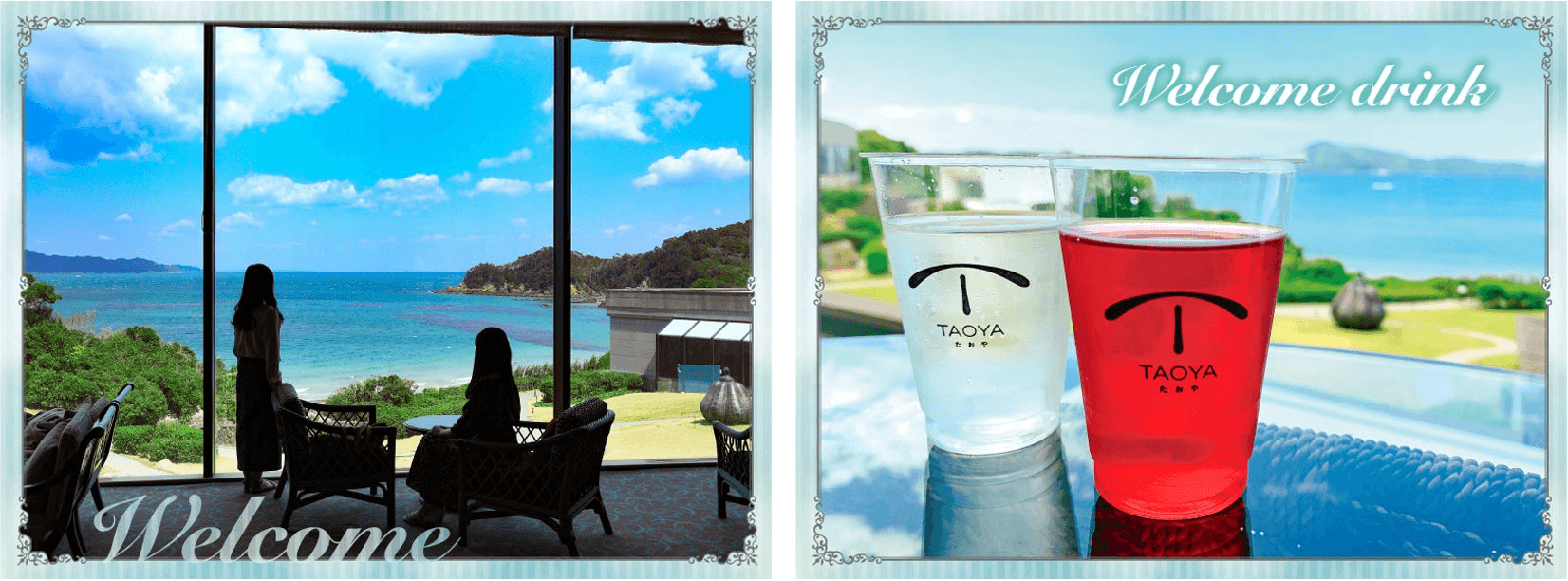 長旅の疲れを癒していただきたいという気持ちはもちろんですが、大きな窓の向こうに特別な景色が広がるロビーラウンジでゆったりとし、TAOYA志摩でのひと時へのワクワク感を膨らませていただけたらいいな、到着したその瞬間からTAOYA志摩を好きになっていただけたらいいな、と思いながらご用意をさせていただいております。