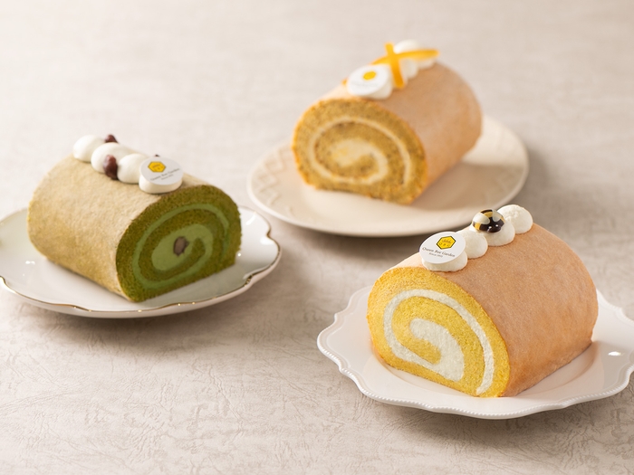3種のロールケーキは、それぞれの素材に合わせて異なるはちみつを使用。はちみつメーカー直営店ならではの、素材本来の風味とやさしい甘さをお楽しみいただけます。