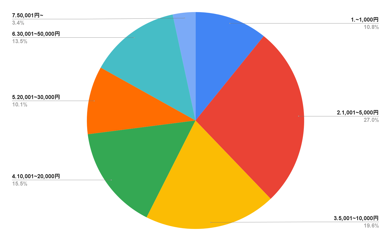 査定額・買取金額に関しては、「1,001~5,000円」と回答した割合が最も高く(27.0%)、次いで「5,001~10,000円」(19.6%)、「10,001~20,000円」(15.5%)と続きました。1,000円未満の低価格帯も1割以上を占めており、取引額にはばらつきがあることがわかります。
