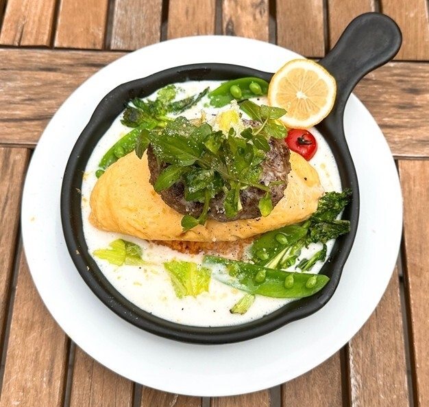TAMAGOYA常総レストラン新メニュー「春野菜と新じゃがいものポタージュオムバーグ」