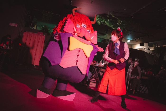 本イベントの舞台は、魔界にあるレストラン「ナイトメリア」。物語は、参加者がこの不思議なレストランに迷い込んでしまうところから始まります。店員として登場するのは、愉快なモンスターたち。彼らは時折ショータイムを披露して楽しませてくれますが、もし参加者が人間だとバレてしまえば、ただでは帰してもらえません。参加者は正体がバレないように振る舞いながら、魔界料理に隠された謎を解き、無事にレストランから脱出することを目指します。