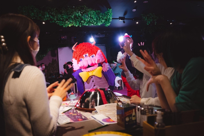 本イベント最大の魅力は、参加者の目の前で繰り広げられる、モンスターたちによるショータイム。可愛らしく歌い、踊るモンスターたちが会場を盛り上げます。ストーリーを“観る”だけでなく“体感する”ショーとしても楽しめる本イベントは、リアル脱出ゲームとしても非常にユニークで、老若男女どなたでも夢中になれること間違いなしです。