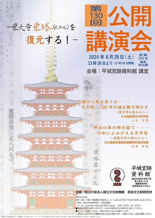 [奈文研イベント]奈良文化財研究所 第130回公開講演会「東大寺東塔(天平塔)を復元する!」(聴講無料)のご案内
