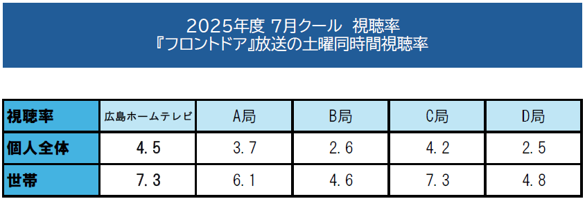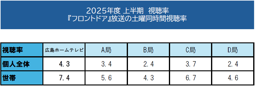 「フロントドア」2025年上半期視聴率 同時間帯1位を獲得!【広島ホームテレビ】
