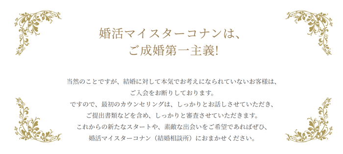 婚活や結婚相談所をお探しの方は是非、「婚活マイスターコナン」にお問い合わせください。