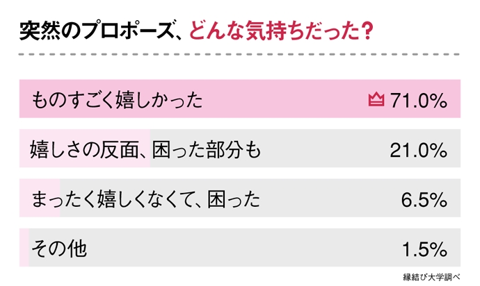 突然のプロポーズは「ものすごく嬉しかった」と感じる女性が71%