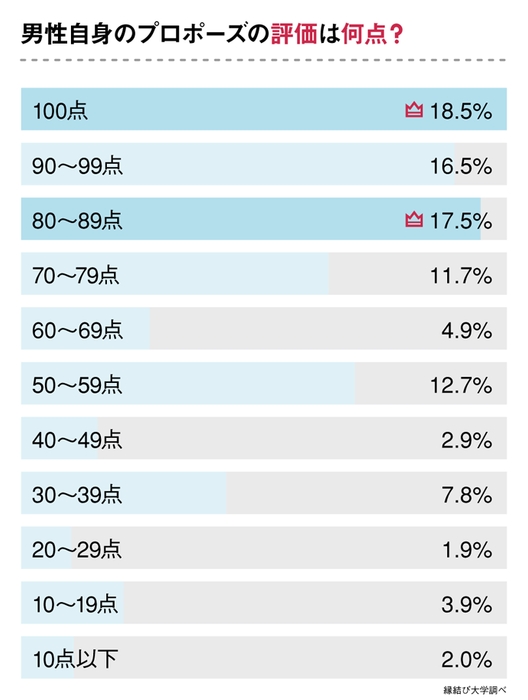 【女性の採点】男性からのプロポーズの評価、平均点は74.3点