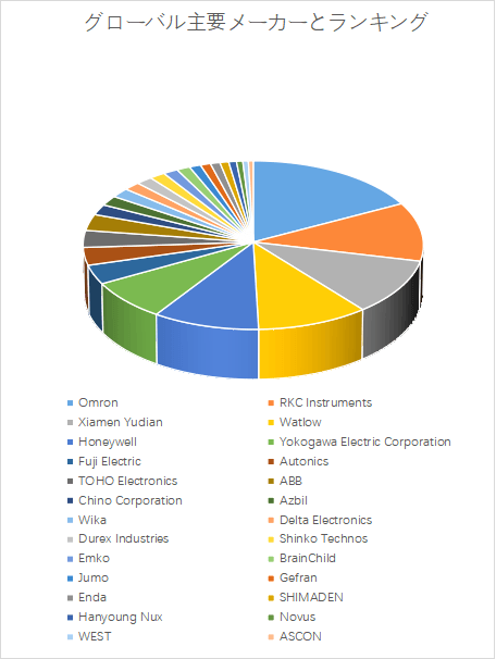 これら上位メーカーは、制御精度・応答速度・通信規格対応力の三要素を核に競争を繰り広げている。日本勢は、Omron、Azbil、Yokogawa、RKCなどを中心に、信頼性・耐環境性・多用途対応力で優位性を保持しており、製造装置との統合制御におけるノウハウが強みである。一方、欧米勢のHoneywellやABB、Watlowなどは、プロセス産業やエネルギー分野でのシステム統合力を武器に、ソフトウェア主導の高機能制御を展開している。また、中国・台湾企業(Xiamen Yudian、Delta Electronics)はコスト競争力とIoT連携対応を武器に、アジア新興市場でシェアを拡大している。市場はすでに価格競争から脱し、AI制御、クラウド連携、自己診断機能といった「知能化技術」を軸とした再編局面に入りつつある。