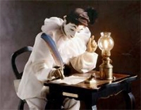 ぜんまいの動力でオルゴールの音色と共に、手紙を書く動作を見せます。書いているうちに、まぶたを閉じて眠りますが、目を覚まして消えかけたランプの火をともし直し、また手紙を書きはじめるというストーリー性のある動きを見せます。