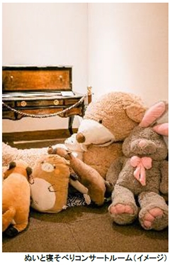 3階ロフト席でぬいぐるみに囲まれたラグスペースで寝そべってコンサートの音色が楽しめるスペースを期間限定で開設します。(1~4名程利用のスペース。先着利用)