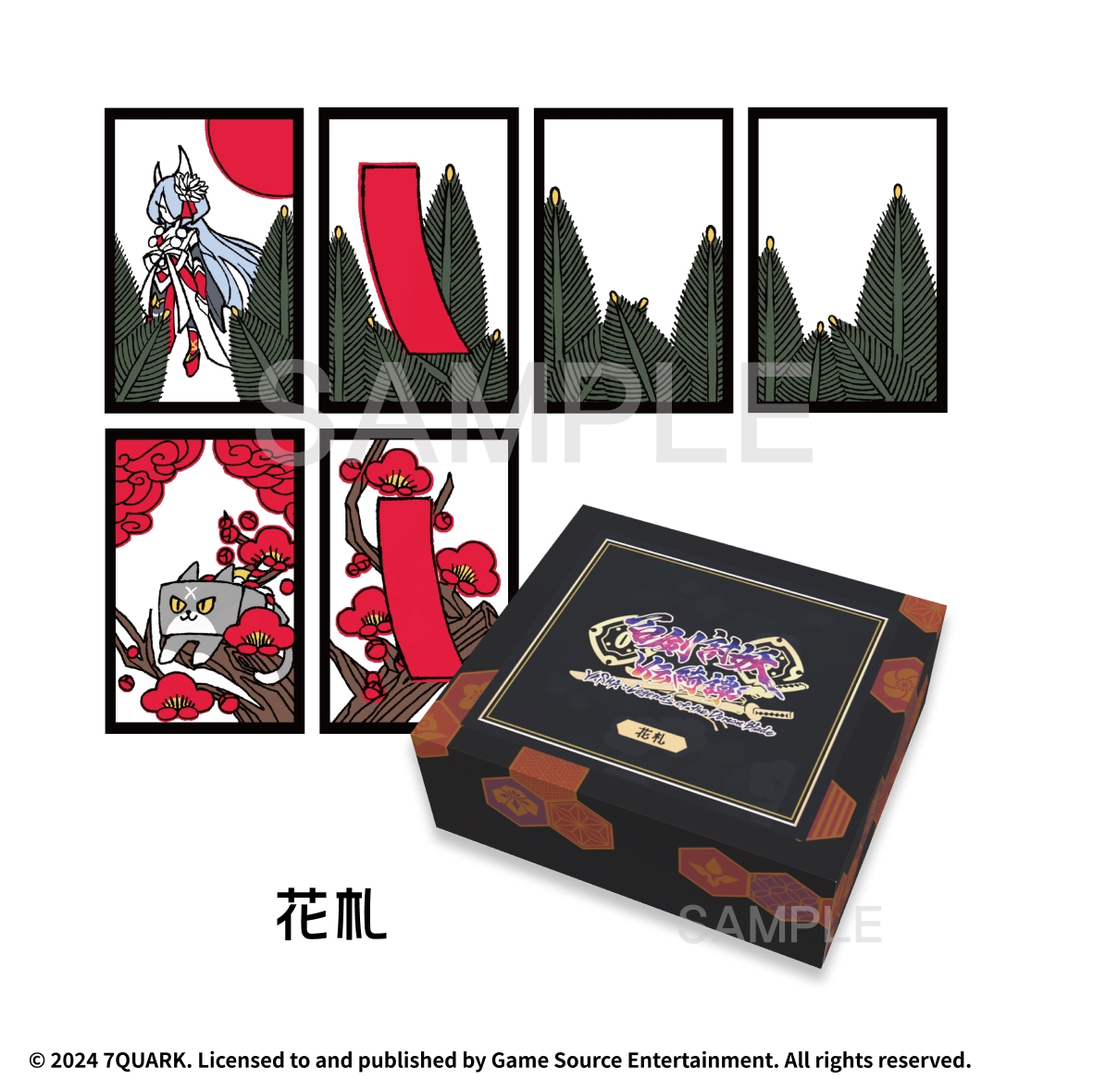 1.花札:ゲーム内のキャラクター武器やアイテムをモチーフにデザインされた花札。カードデザインには和風美学が随所に表現されており、1枚1枚に象徴的な意味が込められ、コレクション価値の高い一品です。