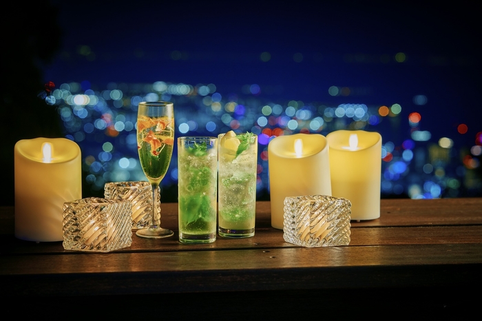 煌めく神戸の夜景を眺める最高のロケーションを活かし、山頂の広場をイルミネーションで幻想的空間に演出します。夏の神戸布引ハーブ園は「きっと忘れない夏」をテーマに毎日ナイター営業を実施しており、パラソルテーブルやバーカウンターなど都会からすぐの自然の中でゆっくりと滞在できる場所を提供します。