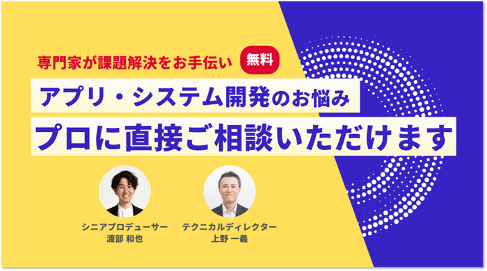 【期間限定】ふわっとしたそのお悩み、アプリ開発、システム開発の ”プロに直接” 聞けちゃう!オンライン無料個別相談受付中!