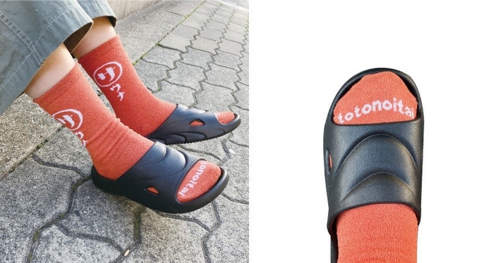 つま先にはごリラックスファンの名称「totonoitai」の文字がデザインされておりサンダルとの組み合わせが◎オレンジ・ブラック・グレーの3色展開。