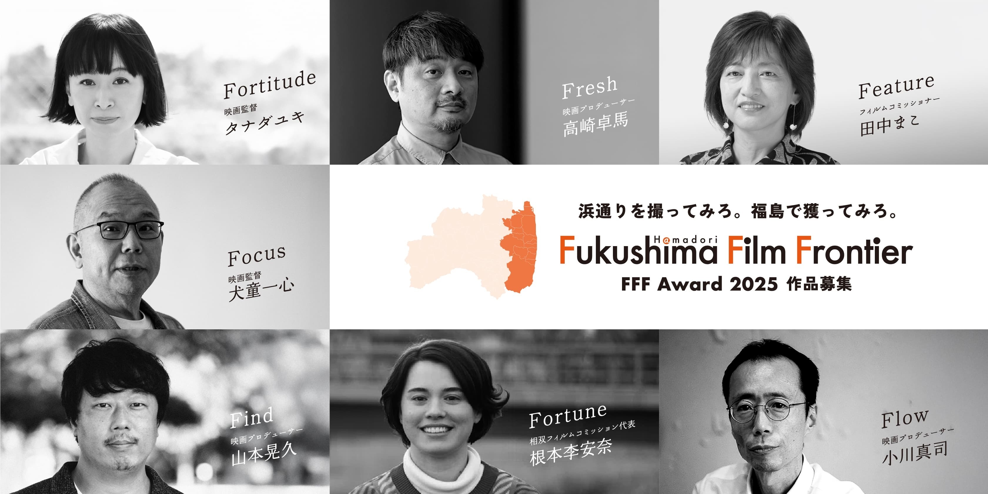 福島県浜通り。いま、映画づくりの新しい可能性が広がり、映画制作関係者たちからも熱い注目を集めているこの地域で、映画企画を広く募集する『FFF Award 2025』が開催されます。FFF ― Fukushima Film Frontier。最後の“F”は、Fantasyでも、Fictionでも、Futureでもかまいません。あなたの感性で、その“F”に新たな意味を込めてください。その想いをFilmに乗せて、福島から、映画のFrontierをひらく。「浜通りを撮ってみろ。福島でAwardを獲ってみろ。」あなたの物語が、きっと世界へとつながる一歩になるはずです。
