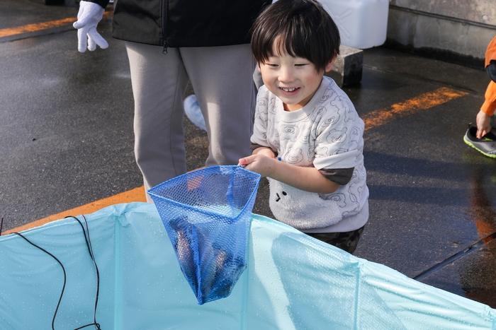 特設プールで元気に泳ぐニジマスを「つかみ取り」でゲットする楽しい体験。参加費は1,000円とお手頃価格でお子さまはもちろん、大人の方も大歓迎です!濡れるのが気になる方には、防水仕様の服をご用意しておりますので、安心してプールに入ってチャレンジできます!手づかみが難しい場合は網を使って豪快に捕まえることも可能です。ご家族みんなでワイワイ楽しめること間違いなし!