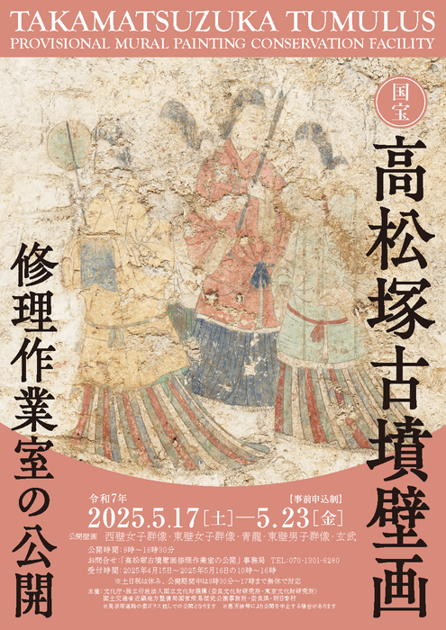 「国宝高松塚古墳壁画修理作業室の公開(第49回)」事務局にお電話いただくか、事務局ホームページにて、定員に達していない日時からご応募ください。