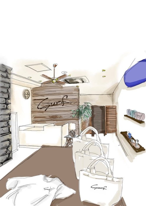 テーマは「Nature & City」で店内は【surf(サーフ)】の名の通り、サーフィンや西海岸をイメージし白と木目を基調としています。