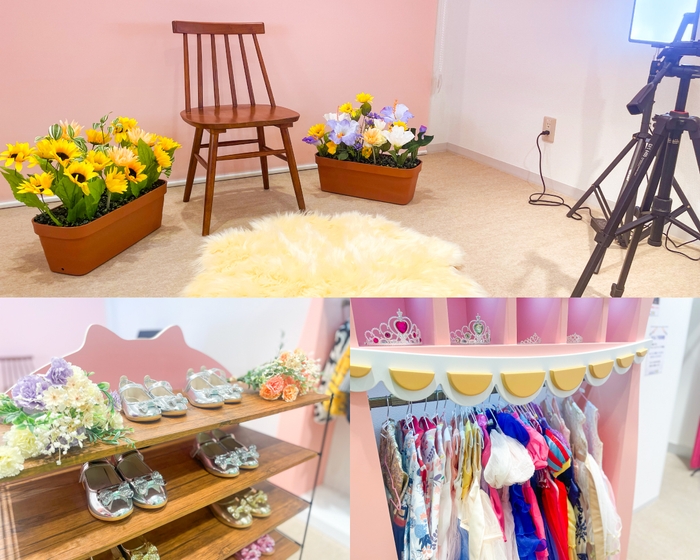 スマホひとつで気軽に記念撮影をお楽しみいただけるセルフ写真館では、本格的な照明や撮影セットに、豊富な種類のお子様用衣装や撮影用小物を追加料金なしでご利用いただけます。