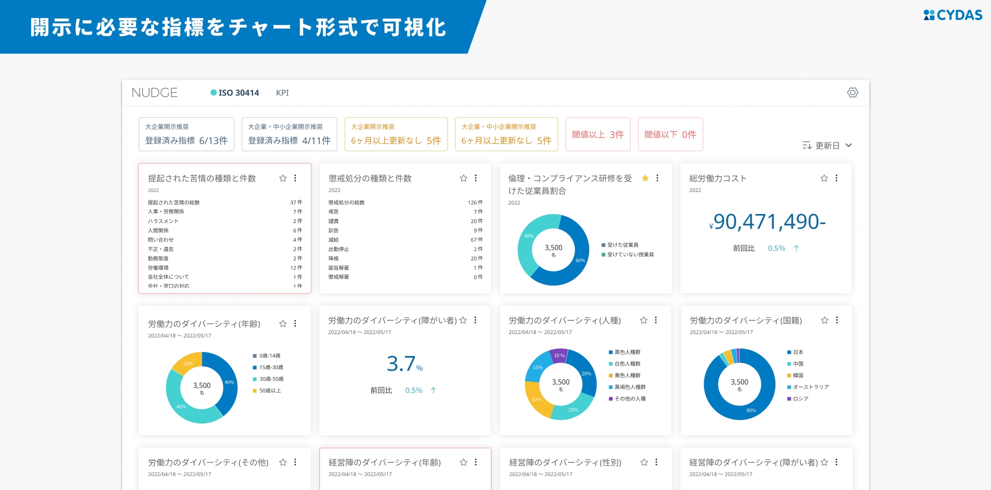 開示だけに留まらず、組織の今を可視化し、改善のプロセスを回していけるのがCYDAS NUDGEの強みです。